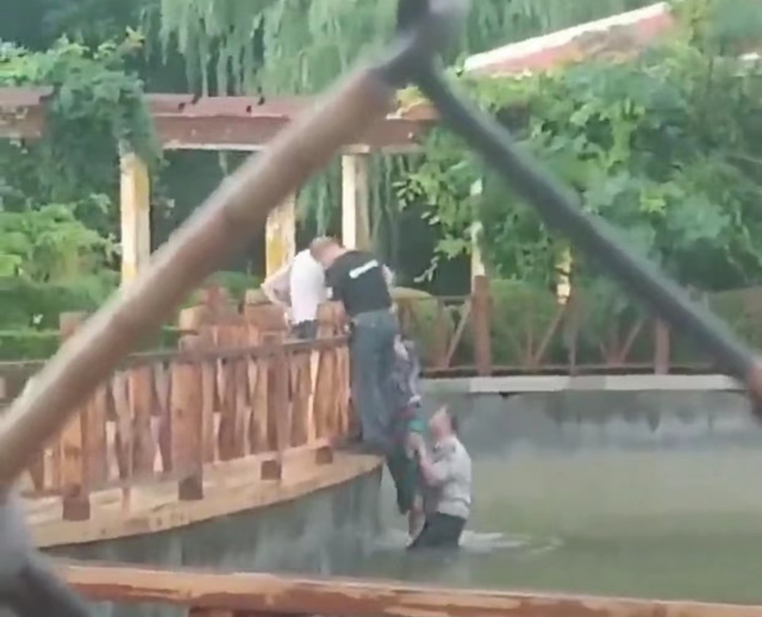 兒童公園有一名女子落水,保安員辛慶祝下水將其救起。網(wǎng)友提供視頻顯示,在該公園人工湖內(nèi),一名保安下水將女子托起,另外兩人站在欄桿附近,用力將女子拉上岸邊。辛慶祝回憶說,女子被救上岸后并無大礙,隨后被他送離公園,辛慶祝說只是舉手之勞而已。他的舉手之勞溫暖了這座城市,更是我們身邊的凡人英雄,為他們點贊。